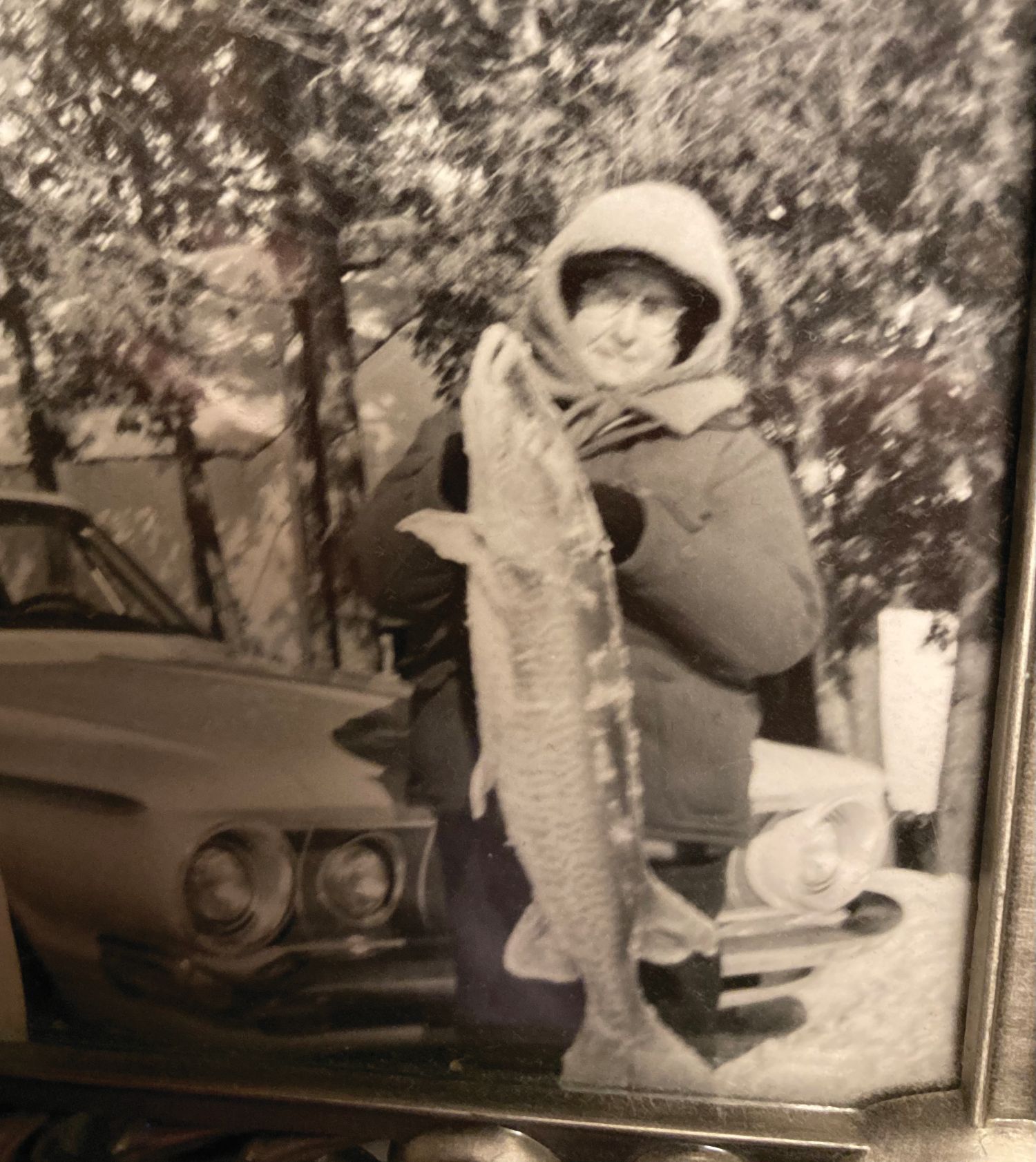 I regret that I do not have a photograph of the muskie, but I have a picture of my grandmother with another impressive catch of the day. She was also featured in the local Kalkaska newspaper, highlighting my grandparents’ ice fishing expertise.