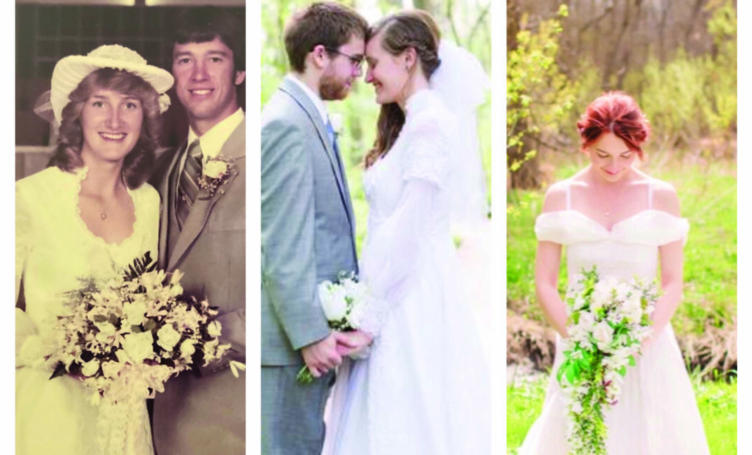 After staring at the dress on a dress form for weeks, I finally put a scissor blade on the cloth, and the creative process began. Finally, after several days of work, second-guessing myself more than once, and a few mistakes that had to be corrected, the dress was ready for my aunt’s youngest daughter to take her own trip down the aisle—a trip this dress now knew quite well. The wedding dress now qualified as “something old…something new…something borrowed…”